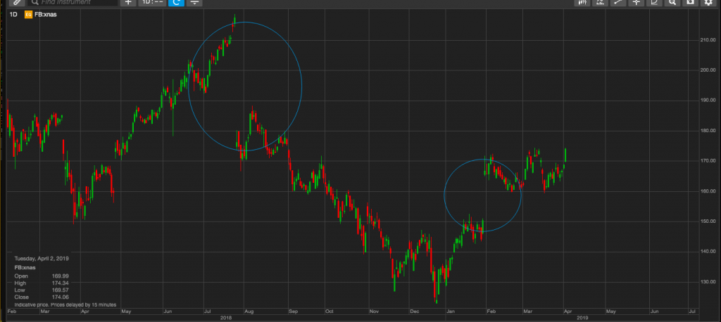 Tenga en cuenta que demostraré mis técnicas utilizando gráficos de velas diarias usando datos del CFD del Nasdaq (“contratos por diferencia”, que es un instrumento negociado en Europa y en otros lugares, aunque no en los EE. UU.). Por supuesto, puede usar datos de un rastreador de índices o futuros en el Nasdaq 100 en su lugar.
