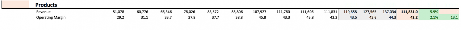 A continuación, los productos. Las ventas crecen a una tasa saludable del 6%, mientras que los márgenes de ganancia son sólidos y se mantienen (incluso, se expanden ligeramente). Sin entrar en más detalles, esto es también lo que esperamos ver como inversores. ¡Muy bien!