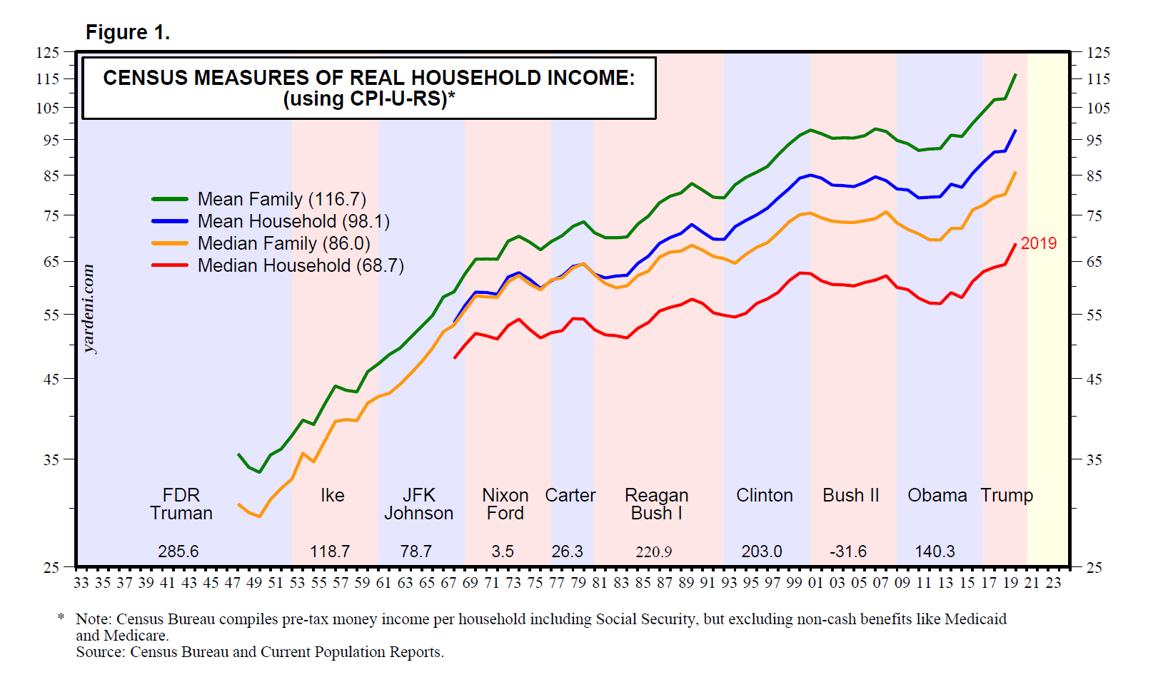 Como lo confirman los últimos datos disponibles del IRS, no se puede negar que los ricos se hicieron más ricos durante 2017 y obtuvieron más ingresos sujetos a impuestos que nunca. Sin duda, continuaron haciéndolo durante 2018 y 2019. Pero ahora incluso los datos del censo muestran que el ingreso familiar medio real aumentó a un nivel récord el año pasado. La mayoría de los estadounidenses fueron más prósperos el año pasado que nunca, aunque algunos más que otros. ¿Por qué alguien tiene problemas con eso?