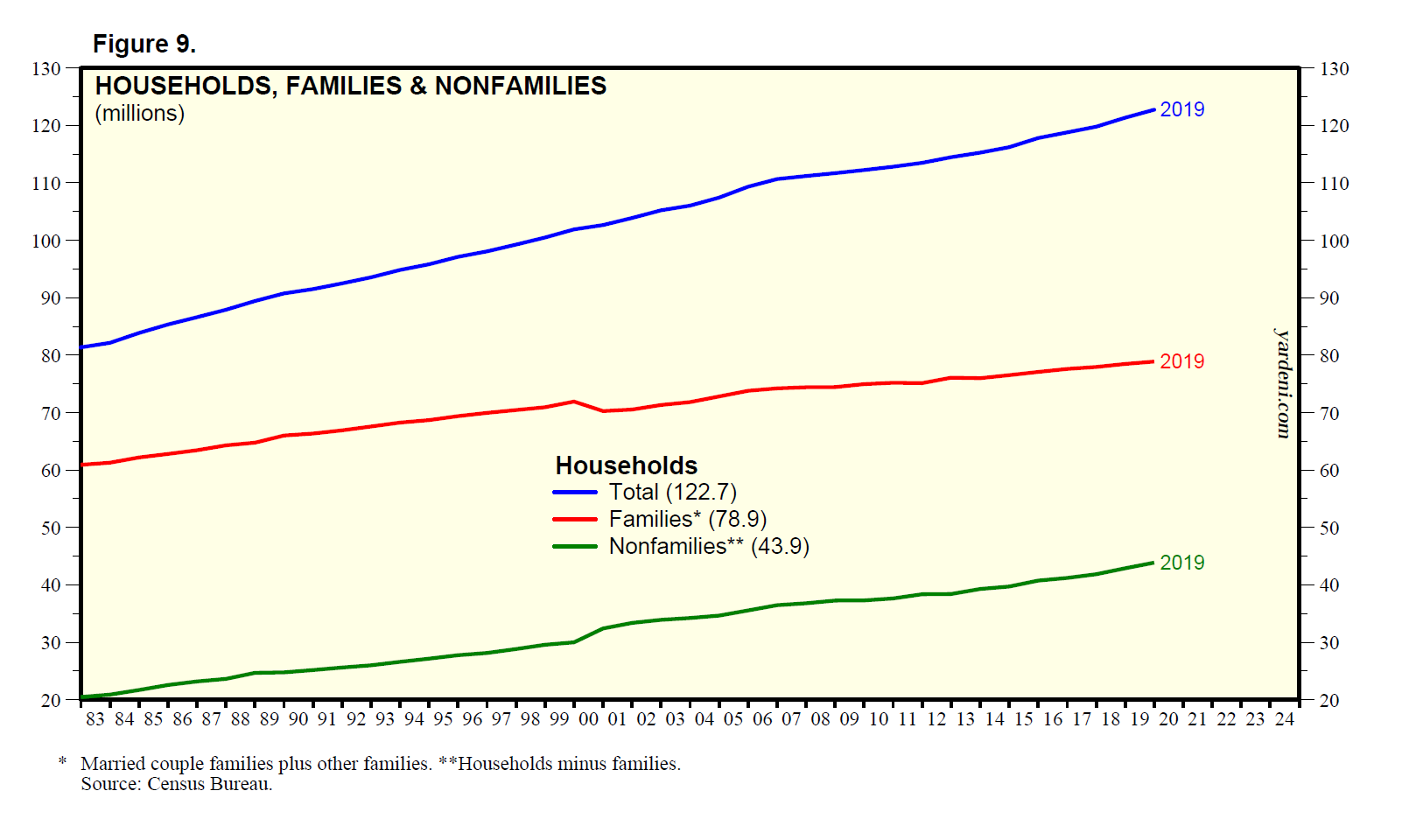 (9) Recuperación impulsada por la vivienda. Entonces, ¿cómo recuperamos los buenos tiempos una vez que la pandemia ha terminado para que podamos disfrutar de una prosperidad generalizada nuevamente? Puede que no tengamos que esperar tanto. La pandemia ha desencadenado un auge de la vivienda que podría compensar muchos de los problemas actuales en las industrias que aún sufren la pandemia. La desurbanización ciertamente está pesando sobre las economías urbanas, pero las suburbanas están en auge porque cada vez más habitantes de apartamentos de la ciudad se están mudando a hogares en los suburbios. Existe una creciente evidencia anecdótica de que los millennials que han estado alquilando apartamentos en áreas urbanas están respondiendo a la pandemia comprando casas en los suburbios. Las ventas minoristas relacionadas con la vivienda de muebles, muebles y electrodomésticos se han recuperado a niveles récord a medida que aumentan las ventas de casas nuevas y existentes.