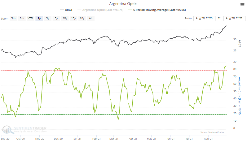 No llores por mí. En las últimas 5 sesiones, el Optimism Index del fondo ARGT Argentina ha promediado más del 85%, el más alto en un año.
