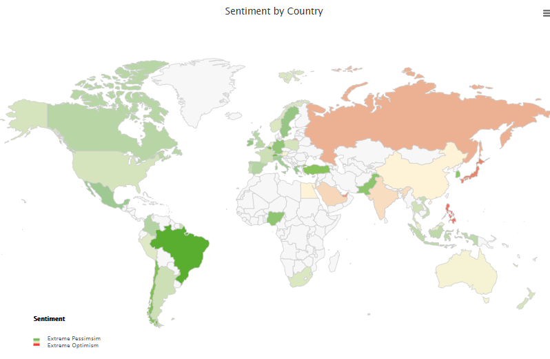 Este contra Oeste. Nuestro mapa geográfico del índice de optimismo muestra que los operadores muestran pesimismo (verde) principalmente en los países occidentales, mientras que muestran optimismo en los países del este.