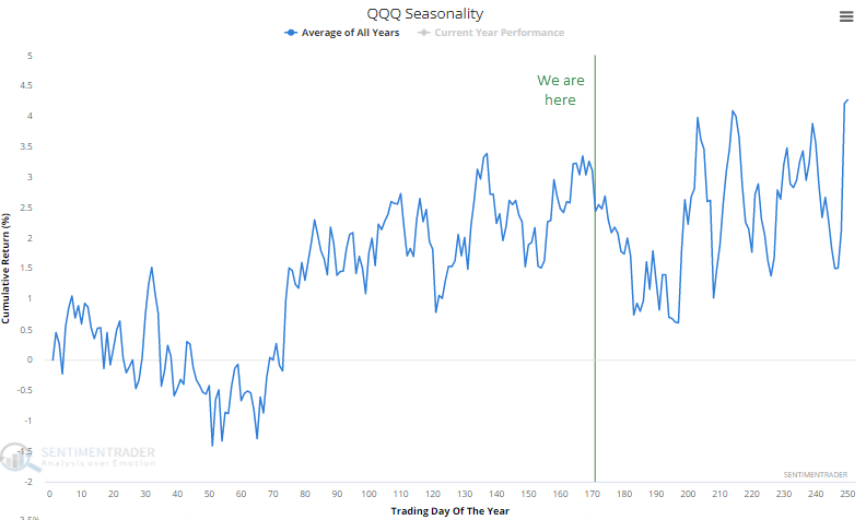 ¿Puede la tecnología contrarrestar la tendencia? El fondo QQQ Nasdaq 100 ha alcanzado su punto máximo en esta época en un año típico desde su inicio.