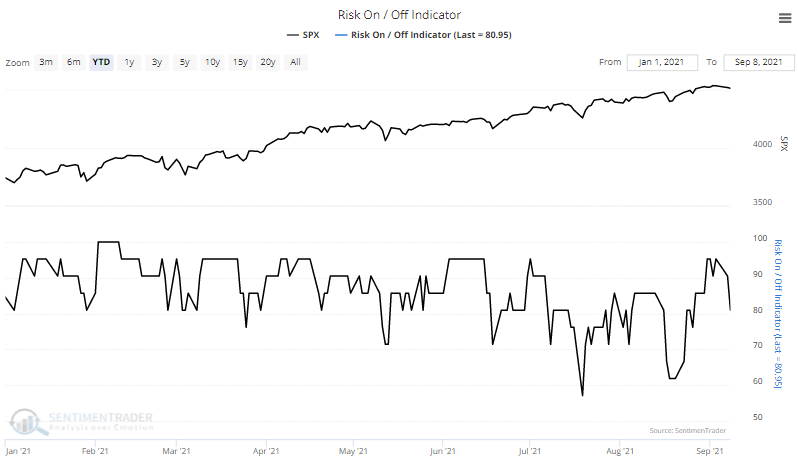 Alivio de riesgos. El indicador de riesgo activado / riesgo desactivado mostró recientemente más del 95% de los indicadores en modo “riesgo activado”, entre los porcentajes más altos de este año, pero el comportamiento de los inversores ahora está comenzando a disminuir desde ese extremo.