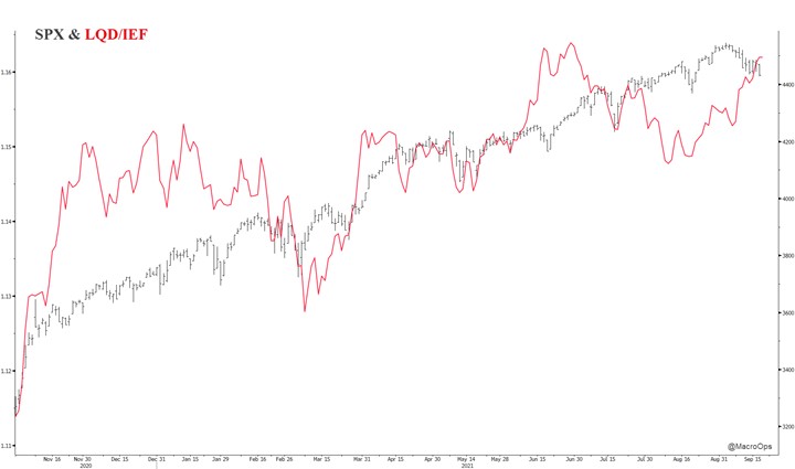 Sin embargo, otra divergencia interesante está en el crédito. LQD / IEF ha tenido una tendencia al alza mientras que el SPX ha bajado. Las divergencias positivas como estas generalmente conducen a un fuerte seguimiento alcista en las acciones. ¿Quizás tengamos una caída fuerte en el FOMC de esta semana?
