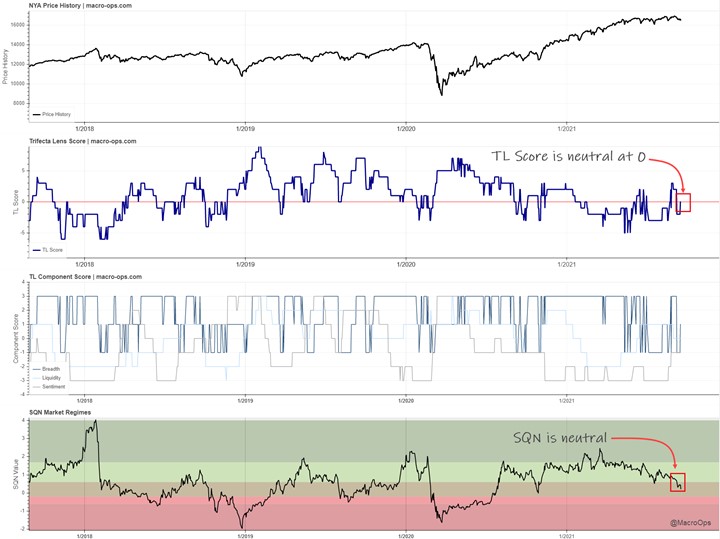 Nuestro puntaje Trifecta, que mide varios indicadores de amplitud, liquidez y sentimiento, es neutral al igual que nuestro régimen de mercado SQN.