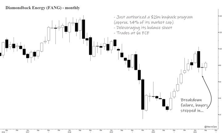 Hay varias acciones que nos gustan. FANG no es una selección nuestra, pero es una buena compañía, con un buen gráfico, y que recientemente anunció un programa masivo de recompras y reducción de deuda.